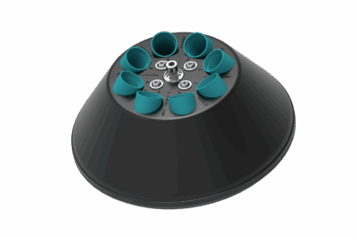 The built-in rotor is compatible with the EBA 200/200S small benchtop centrifuge. The 8-place, angle rotor is ideal for round-bottom and conical tubes up to 15 mL without bio-containment. Please inquire about specific tube and adapter combinations and the corresponding RCF values. RCF values may differ for centrifuges with refrigeration. Not every rotor configuration is pictured; inquire for more details.