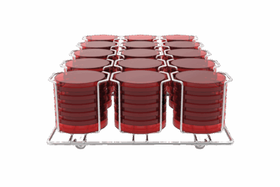 Stainless steel rack for up to 90 Petri dishes per rack (Ø 90 mm).