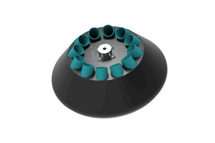 The Hettich Rotor 1015 is compatible with the MIKRO 220 microcentrifuge. The 12-place, angle rotor is ideal for round-bottom and conical tubes up to 15 mL without bio-containment. Please inquire about specific tube and adapter combinations and the corresponding RCF values. RCF values may differ for centrifuges with refrigeration. Not every rotor configuration is pictured; ask for more details.