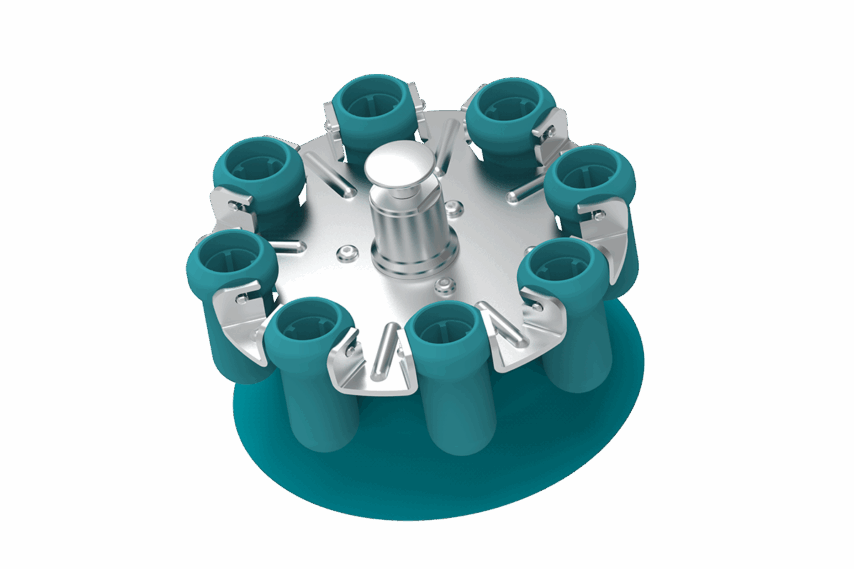 The Hettich Rotor 1148 is compatible with the EBA 280 small benchtop centrifuge. The 8-place, swing-out rotor is ideal for round-bottom tubes up to 10 mL without bio-containment. Please inquire about specific tube and adapter combinations and the corresponding RCF values. RCF values may differ for centrifuges with refrigeration. Not every rotor configuration is pictured; ask for more details.