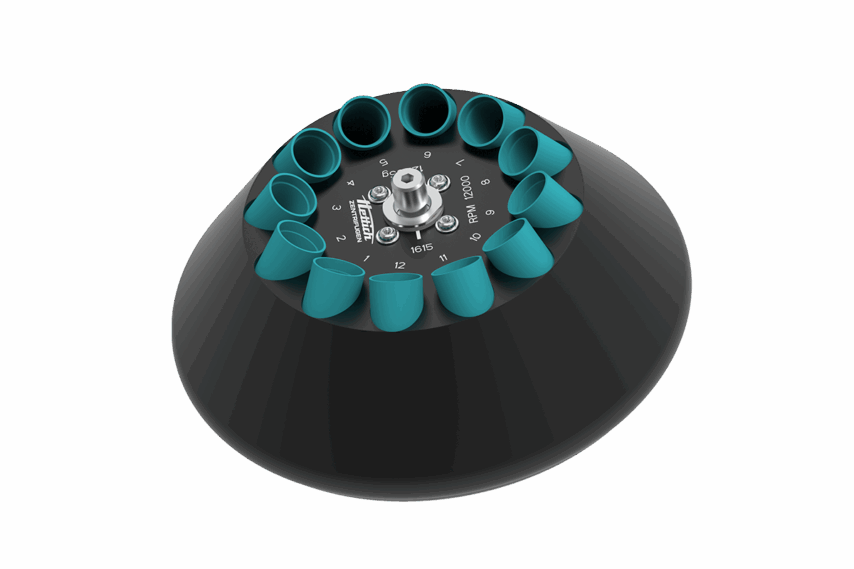 The Hettich Rotor 1615 is compatible with the UNIVERSAL 320/320R benchtop centrifuge. The 12-place, angle rotor is ideal for round-bottom and conical tubes up to 15 mL without bio-containment. Please inquire about specific tube and adapter combinations and the corresponding RCF values. RCF values may differ for centrifuges with refrigeration. Not every rotor configuration is pictured; ask for more details.