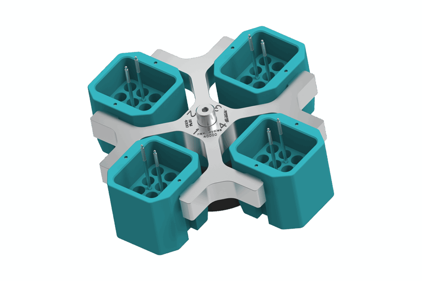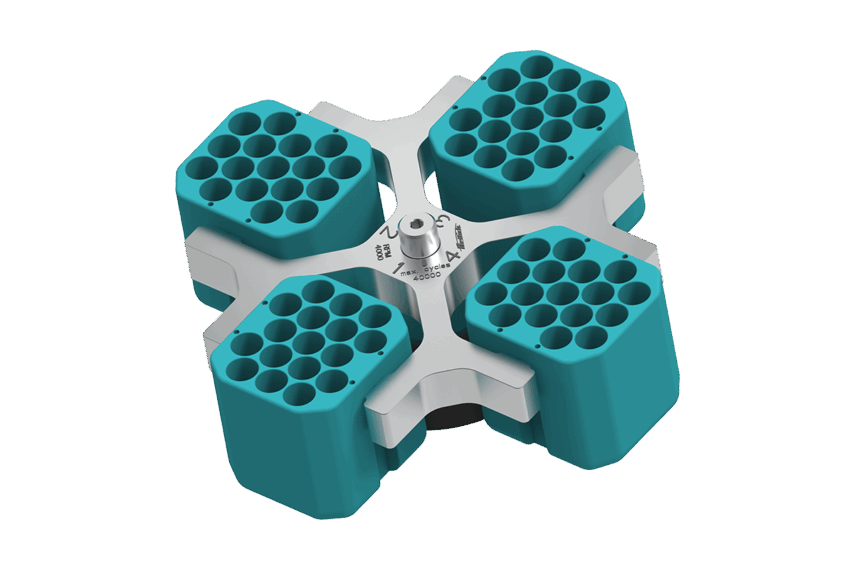 The Hettich Rotor 1624 is compatible with the ROTOFIX 32A and the UNIVERSAL 320 benchtop centrifuges. The 4-place, swing-out rotor is ideal for tubes up to 100 mL with available BioSeal lids. Please inquire about specific tube and adapter combinations and the corresponding RCF values. RCF values may differ for centrifuges with refrigeration. Not every rotor configuration is pictured; ask for more details.