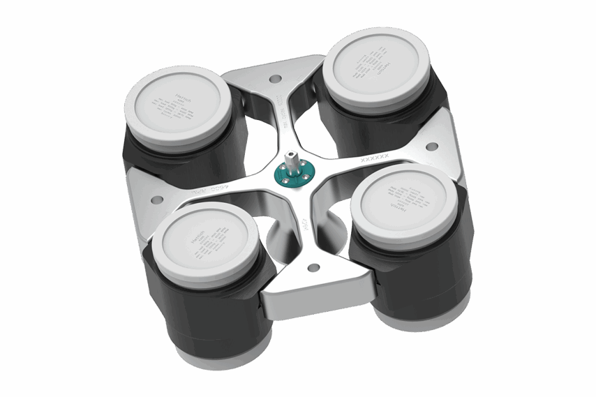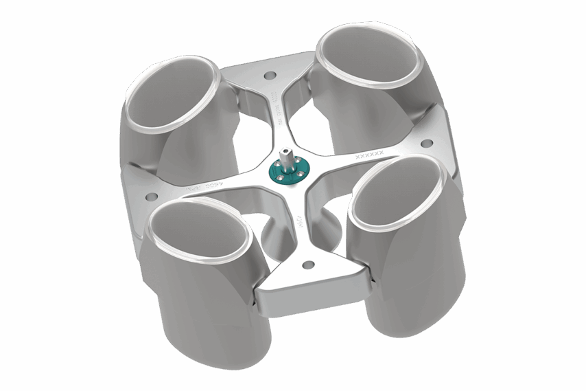 The Hettich Rotor 4294 is compatible with the ROTIXA 500 floor centrifuge. The 4-place angle rotor is ideal for round-bottom, conical, skirted tubes, blood bags, bottles, plates, and racks up to 1,000 mL. Please inquire about specific tube and adapter combinations and the corresponding RCF values. RCF values may differ for centrifuges with refrigeration. Not every rotor configuration is pictured; ask for more details.