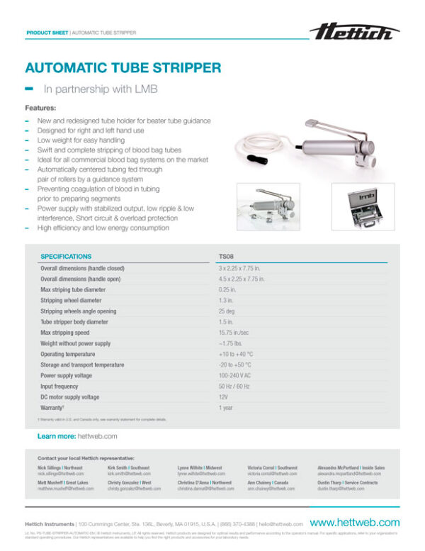The lightweight tube holder is designed for both right- and left-handed users. It is compatible with all blood bag systems and automatically centers the tubing to prevent coagulation before segment preparation… Download product sheet for more information.